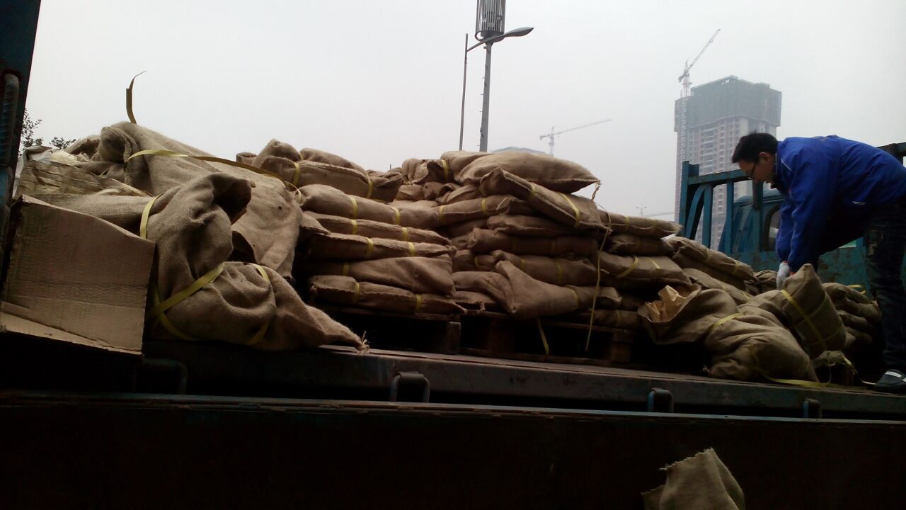 由于倉庫條件有限,不能使用叉車,伙伴們徒手將一袋袋沉重的鏈條抱進(jìn)倉庫。