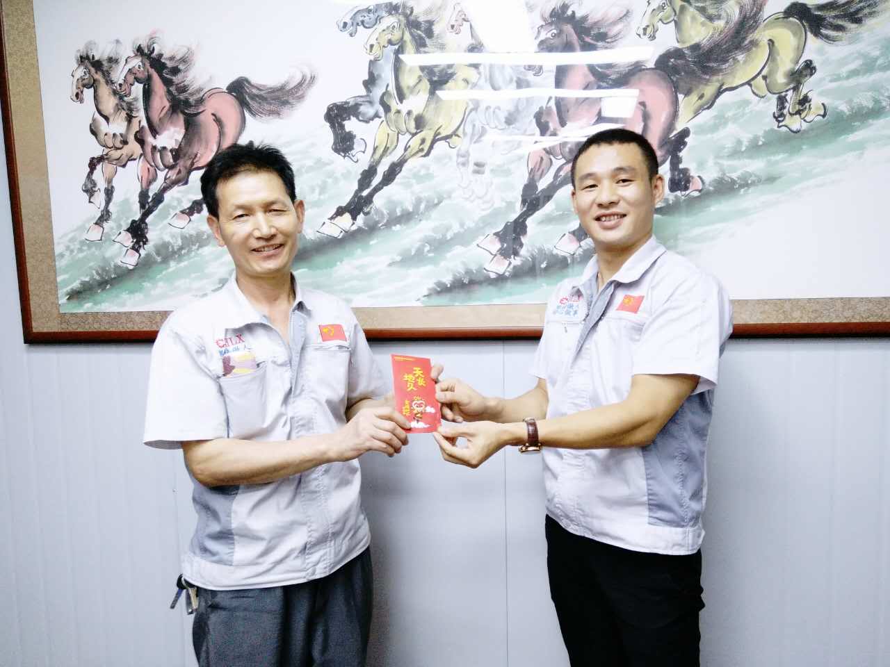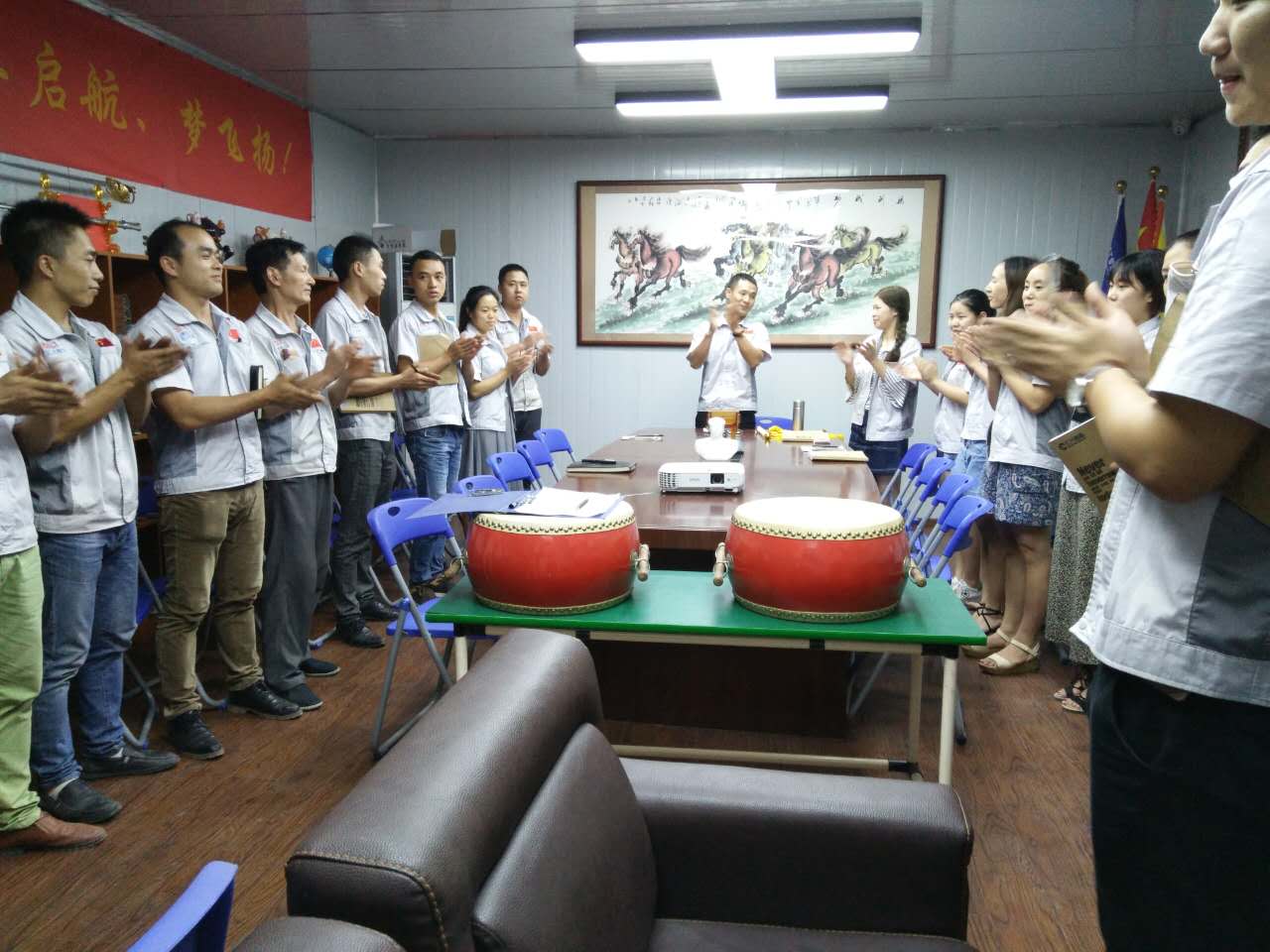 匯利興家人自我價(jià)值枰稱估量圖示 會議召開前,全體人員對企業(yè)三道“人道、孝道、商道”行三鞠躬,隨后以“士氣擊鼓”儀式正式進(jìn)入會議主題。 全體員工向企業(yè)三道行三鞠躬 會議士氣擊鼓,士氣比武器更重要 會上,首先胡總經(jīng)理對我司上半年度業(yè)績增長度做了相應(yīng)的講解;其次對我司發(fā)展現(xiàn)狀做了相應(yīng)的分析,并表示公司相關(guān)制度會隨著規(guī)模壯大不斷加之嚴(yán)格化;隨即提到公司人才倍增計(jì)劃、匯利興品牌影響力度及公司員工福利事宜,并表示在前進(jìn)及壯大的基礎(chǔ)上必經(jīng)“改革”之路,推陳出新、不斷創(chuàng)新。隨后,各部門主管依次對上季度做簡短述職,檢討不足分享經(jīng)驗(yàn);最后會議以每月最佳部門獎及月度之星的頒選而落下帷幕。 每月最佳部門獎與月度之星,是一份激勵與鼓舞,是一份責(zé)任與擔(dān)當(dāng),是一份愛與認(rèn)可;正是這份公司的激勵、自我的責(zé)任、同事的愛,使匯利興家人更加團(tuán)結(jié)與奉獻(xiàn),默默付出與努力,讓這個家越來越壯大。此次最佳部門獎為“客服部”,月度之星“周長發(fā)”家人,在此感謝他們的付出與努力,讓我們用最堅(jiān)韌的力量一起奔向心中的藍(lán)天。 胡總經(jīng)理(圖左)與月度部門“客服部”代表人蒲經(jīng)理(圖右)合影 胡總經(jīng)理(圖右)與月度之星周長發(fā)(圖左)家人合影