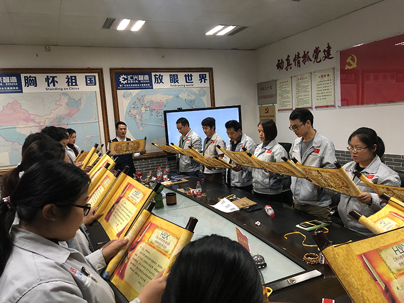 會議第四項議程:2019年公司品牌創(chuàng)新方案。緊緊立足“匯利興”品牌,開拓創(chuàng)新,打造匯興產(chǎn)品特色,做到人人皆知匯興品牌,人人稱贊匯興品牌。 會議第五項議程:2019年度目標宣誓及執(zhí)行方案。會上,全體人員對2019年目標做出承諾,宣讀誓言簽下軍令狀。因為有承諾,才有責任和擔當;因為有夢想,才有砥礪前行的信念。匯利興戰(zhàn)士們在前行的道路上披荊斬棘、開疆擴土,相信行業(yè)的掌聲始終屬于我們
