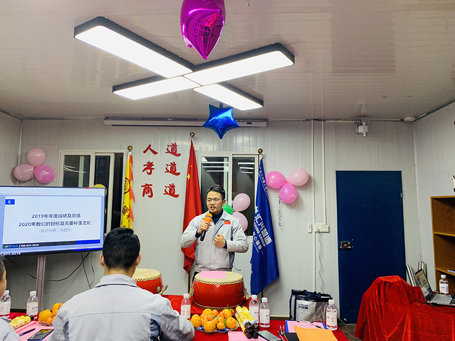 會(huì)議第二項(xiàng)議程,胡總經(jīng)理做2019年工作總結(jié)暨2020年工作規(guī)劃。胡總談到,2019年是充實(shí)且忙碌的一年,在這一年我們實(shí)現(xiàn)了企業(yè)規(guī)模的跨越,成功入駐西彭標(biāo)準(zhǔn)工業(yè)園,同時(shí)強(qiáng)調(diào)在2020年,經(jīng)濟(jì)下行的市場(chǎng)環(huán)境下,可以預(yù)料和難以預(yù)料的風(fēng)險(xiǎn)挑戰(zhàn)會(huì)更多更大,因此全體人員必須提高戰(zhàn)斗意識(shí),做好打攻堅(jiān)戰(zhàn)的準(zhǔn)備,切實(shí)抓好開源節(jié)流各項(xiàng)工作,確保公司實(shí)現(xiàn)經(jīng)營指標(biāo)的跨越,完成整體團(tuán)隊(duì)目標(biāo)。胡總談到,在面對(duì)充滿挑戰(zhàn)的2020年,我們需要腳踏實(shí)地走穩(wěn)每一步,全力以赴為公司添彩,為匯興智造集團(tuán)20周年華誕獻(xiàn)禮。