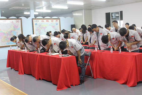 有大家才能有小家,升國旗唱國歌。全體員工精神抖擻,一起唱響國歌-五星紅旗迎風飄揚.....從今走向繁榮富強,現場聲音嘹亮、士氣如虹,著實展現了祖國兒女、新時代接班人的精神面貌。 會議開始,全體員工整肅衣冠,對倍加推崇的孝道、商道、人道鄭重鞠躬,莊嚴宣誓企業(yè)愿景:“成為全球領先的智能自動化產業(yè)鏈集成服務商”,企業(yè)使命:做受尊敬的好人,造受尊敬的產品,辦受尊敬的企業(yè),建受尊敬的平臺,企業(yè)精神“用情做人、用心做事”,團隊精神“忠誠團結、勤奮進取”,工匠精神:創(chuàng)于手、精于工、智于器、匠于心、品于行等。