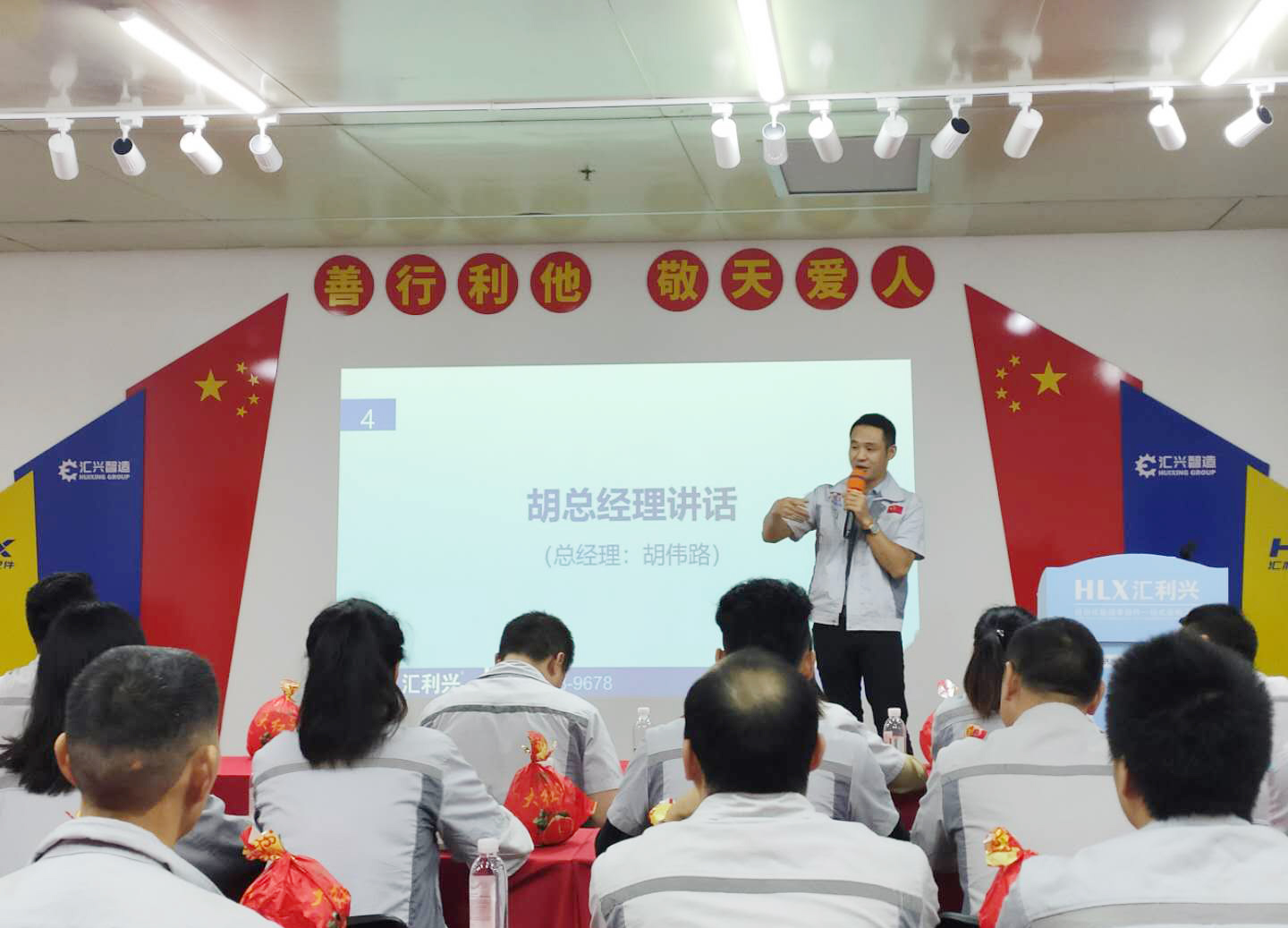 會議第四項,迎中秋慶國慶。公司自成立以來,一直秉持以人為本,關(guān)愛員工的理念,不斷完善員工福利制度,每逢大大小小的節(jié)日都不忘為員工送上一份祝福,讓員工具有自豪感、幸福感和歸屬感,讓員工在繁忙的工作中也能感受到家的溫暖,同時也促進了團隊的凝聚力及向心力,提升員工工作動力,為匯興遠大前景及發(fā)展貢獻一份力量! 會議第五項,胡總經(jīng)理作工作總結(jié)。首先胡總通過企業(yè)文化之一“善行他人,敬天愛人”這八個字進行相應(yīng)闡述,積善行,利于他,以行動為結(jié)果導(dǎo)向,要常懷敬畏之心、感恩之心,利他人之心,要懷有強烈的愿望,付出不亞于任何人的努力;其二,追求銷售最大化,實現(xiàn)經(jīng)費最小化;其三,勉勵在場員工,在面對困境時,要拿出勇氣,要燃起斗志;要胸懷坦誠之心,要不斷挑戰(zhàn)創(chuàng)造性的工作,要對自己有所期望。最后談到:人生最幸福的事情,就是有人信你,有人幫你,有人愛你,有人懂你,并期望全體員工為了公司的美好明天,一定要努力努力再努力! 會議尾聲,齊唱匯興之歌(相信我們會創(chuàng)造奇跡),全體員工起立肩并肩,一起唱響“只要我們一起努力,相信我們一定會創(chuàng)造奇跡”,歌聲嘹亮,振奮人心!
