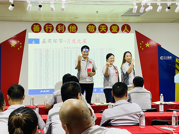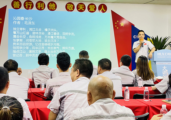 寶劍鋒從磨礪出 梅花香自苦寒來。為回顧總結上半年工作,進一步明確下半年工作思路,確保全年目標任務順利完成。2021年7月29日18點30分,匯利興西南工廠全體職員在匯利興學校召開2021年上半年工作總結會議。 會議伊始,兩位高管敲響士氣鼓,敲響我們下半年沖鋒的號角,現(xiàn)場士氣如虹。隨后宣讀企業(yè)文化。