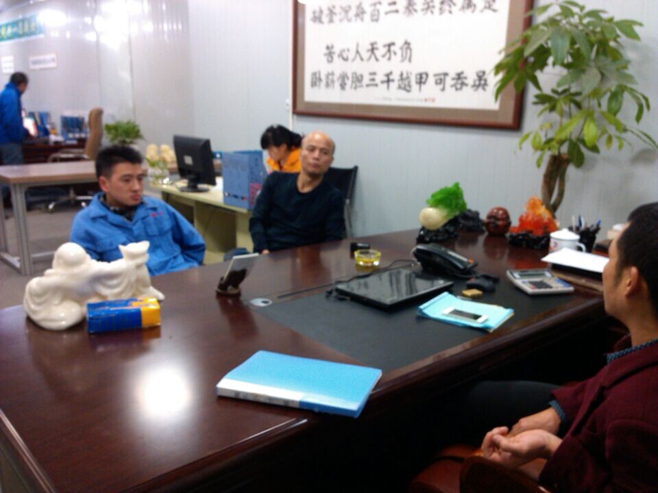 客戶親來(lái)公司洽談,胡總親自接見并和客戶一起制定產(chǎn)品制造方案。
