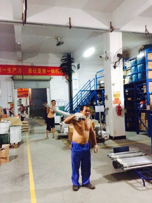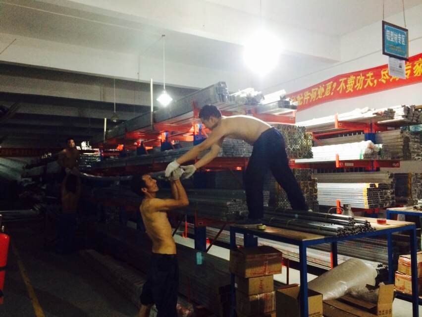 怎么玩耍;但是我司的車間里依然緊張忙碌著。由于我司自行開(kāi)模的工業(yè)鋁型材今日到貨八十余萬(wàn)元,滿滿的兩大卡車鋁材要馬上卸貨。我司戰(zhàn)士二話不說(shuō),加班加點(diǎn),開(kāi)足馬力,努力工作著。